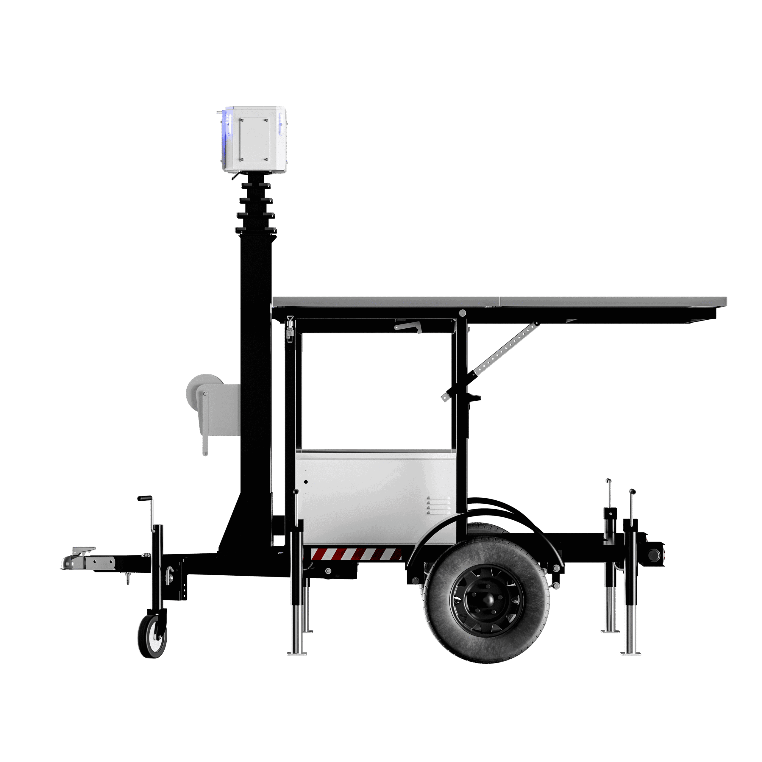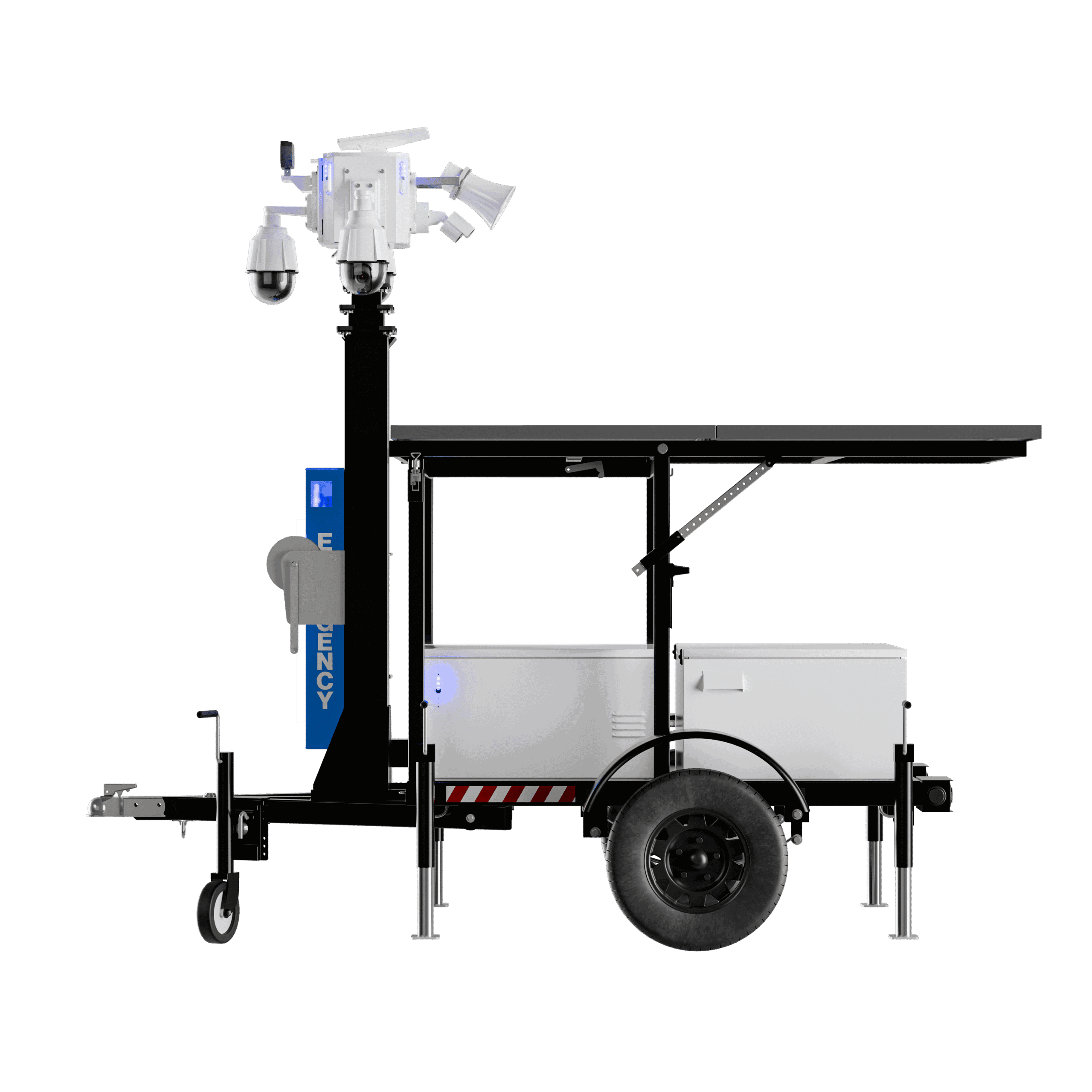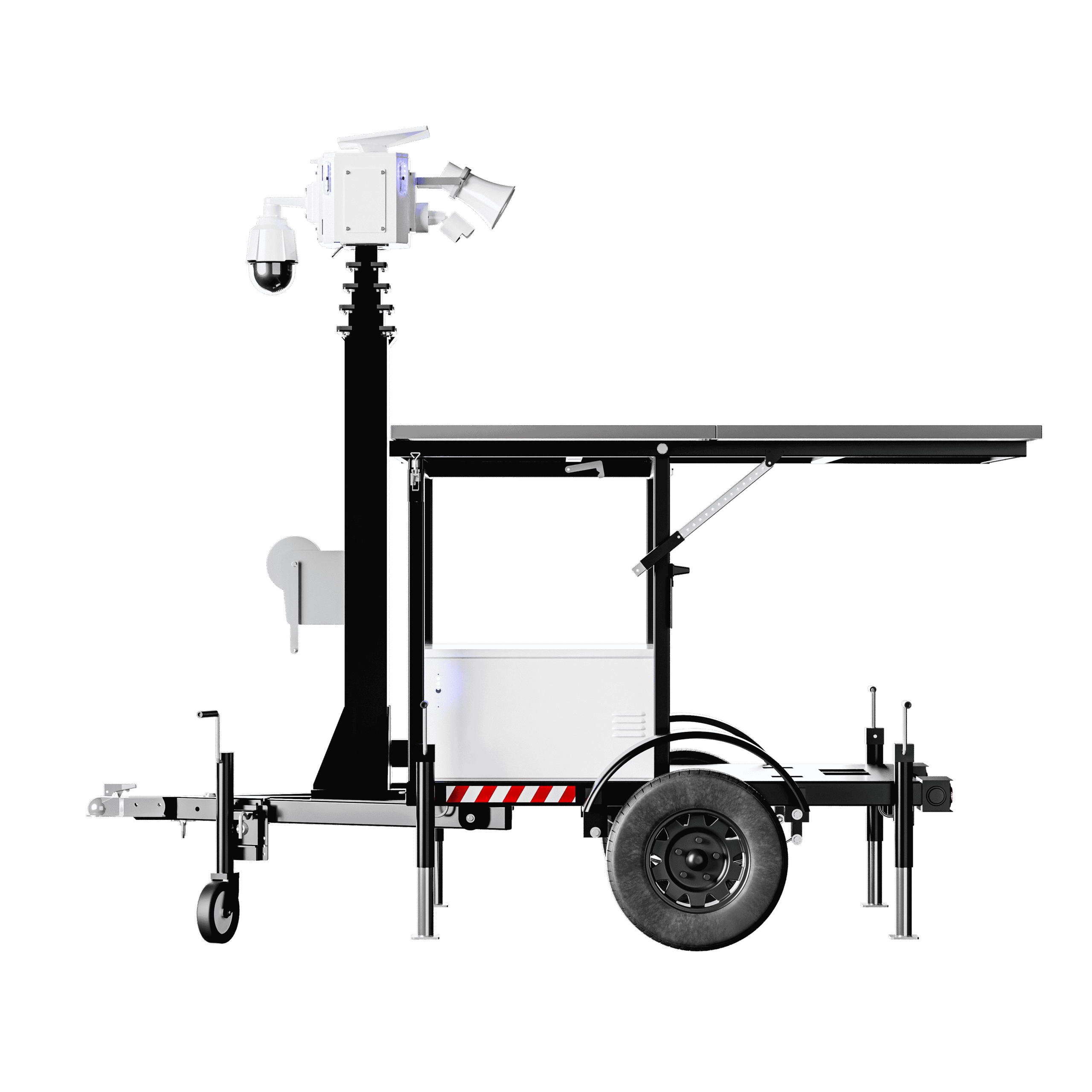 - Flexibility. The towable unit features a 20-foot retractable mast that can house a variety of technology and equipment including cameras, lights, sensors, and audio speakers.